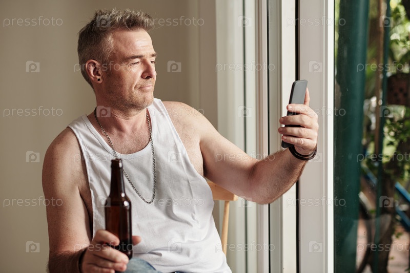 Пьяный мужчина, имеющий видеозвонки