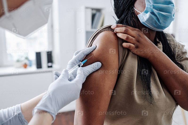 Взрослый пациент получает прививку в больнице