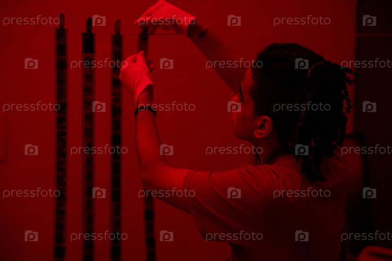 Фотограф, работающий в темной комнате с красным светом