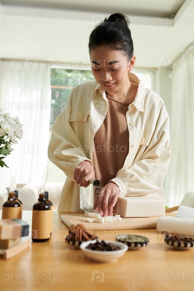 Женщина, режущая мыльную базу