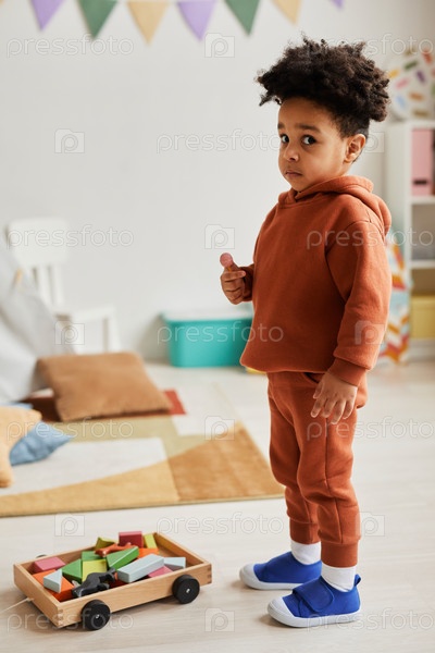 Милый черный ребенок в игровой комнате