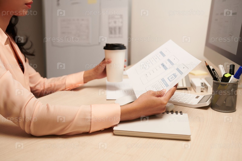 Пенсивный дизайнер пользовательского интерфейса смотрит на макеты