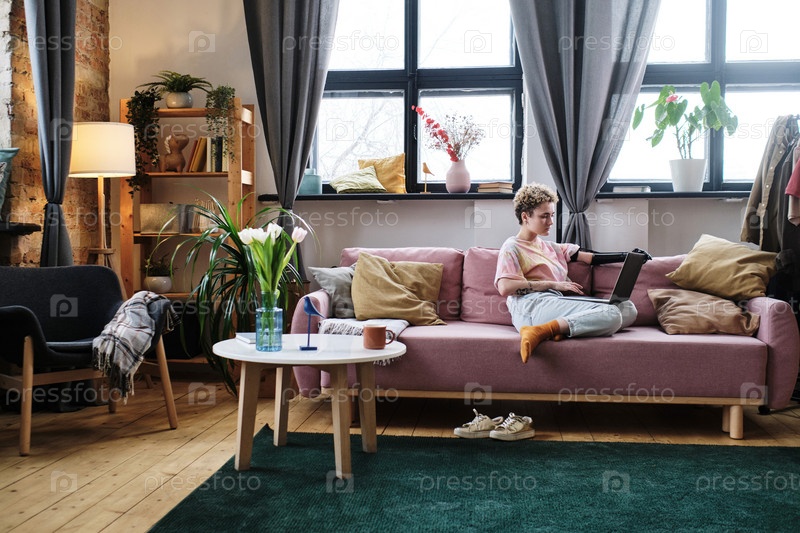 Женщина, использующая ноутбук дома