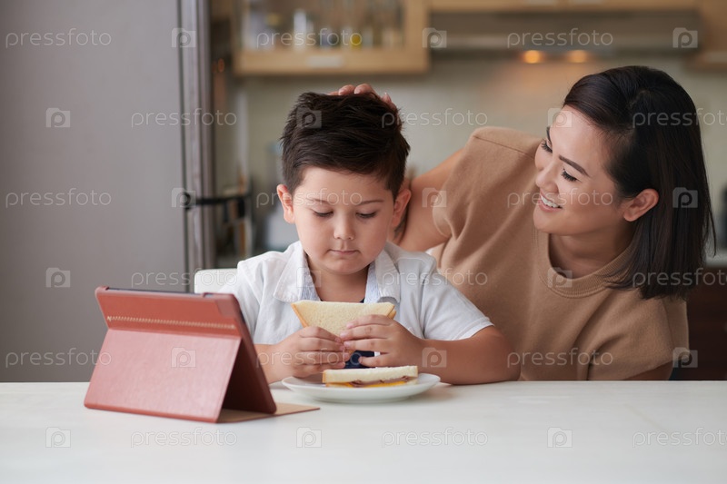 Смешивание волос маленького сына с матерью