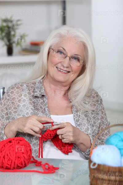 Пожилая женщина вяжет