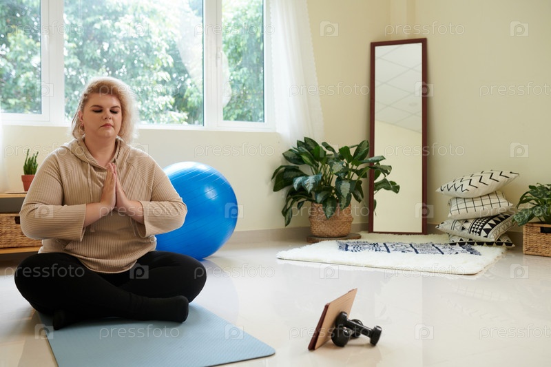 Женщина плюс-размера, практикующая йогу