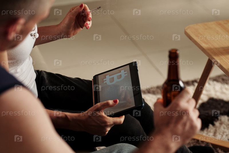 Пара читает статью о цене биткоина