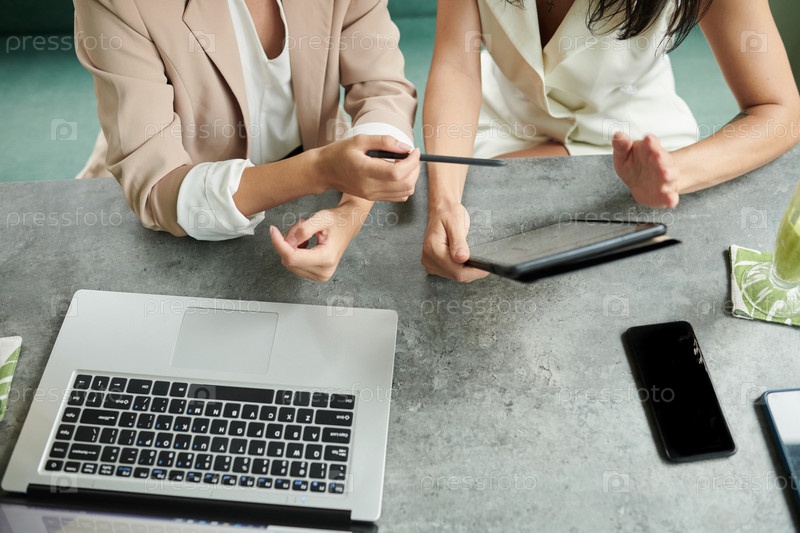 Деловые женщины обсуждают целевую страницу