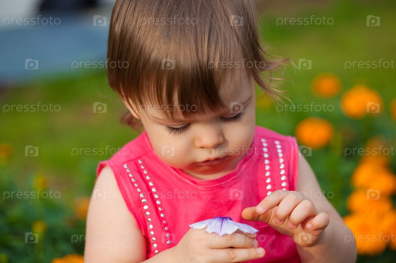 Маленькая девочка держит цветок на открытом воздухе