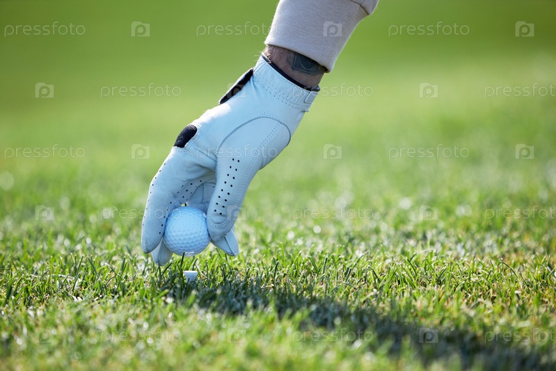 Рука подбирает мяч для гольфа