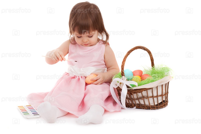 Девочка красит пасхальные яйца