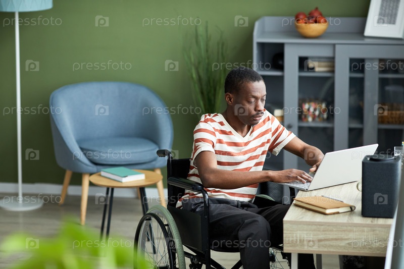 Человек с инвалидностью, использующий ноутбук дома