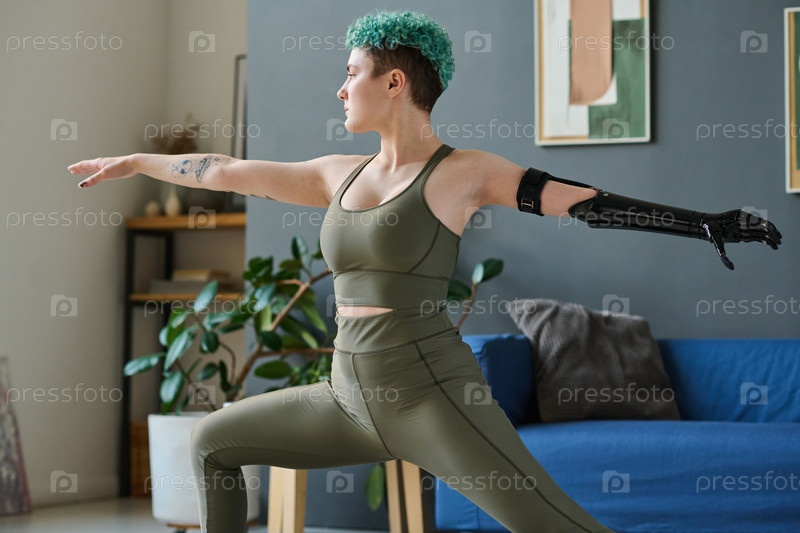 Женщина делает упражнения по растяжению дома
