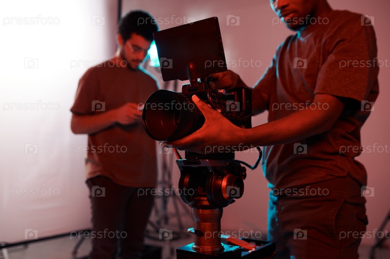 Видеооператор, использующий профессиональную камеру для съемки фильма