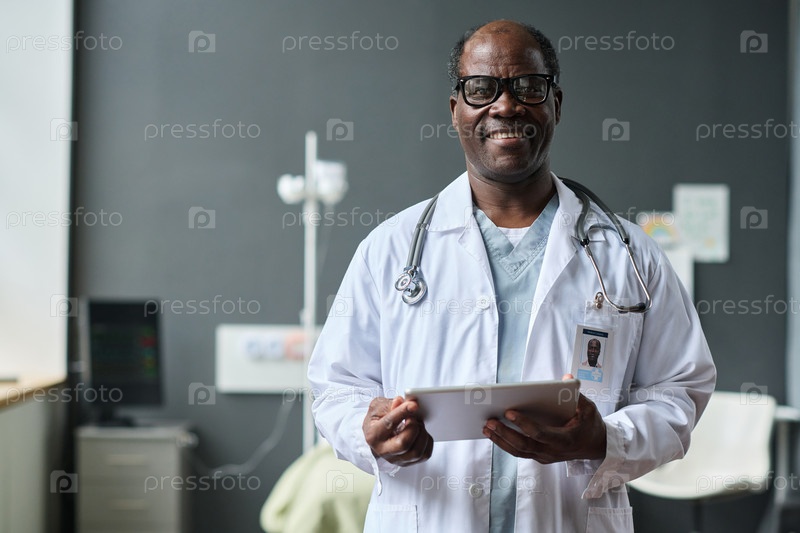 Афроамериканский врач-мужчина, стоящий в палате