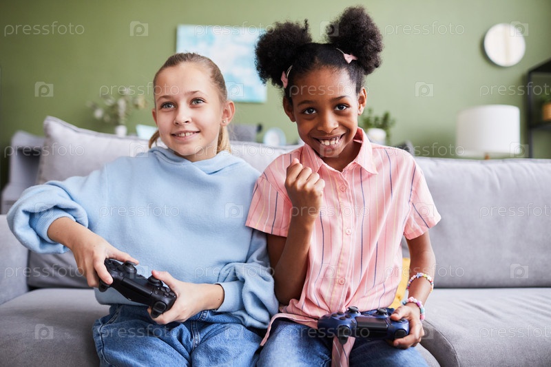 Две молодые девушки играют в видеоигры