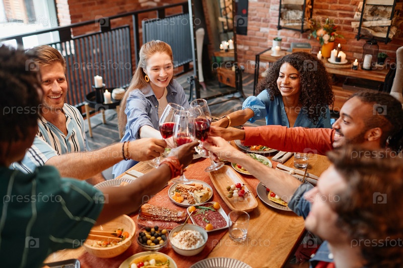 Друзья приносят тосты в честь праздника