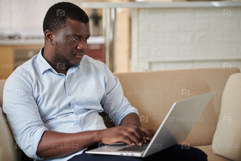 Бизнесмен, работающий на ноутбуке дома