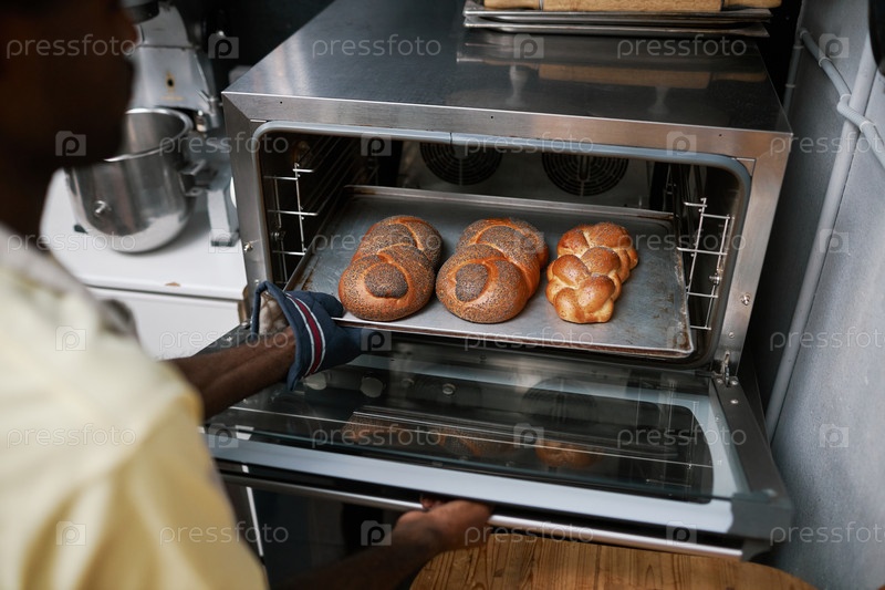 Бейкер вынимает поднос из духовки