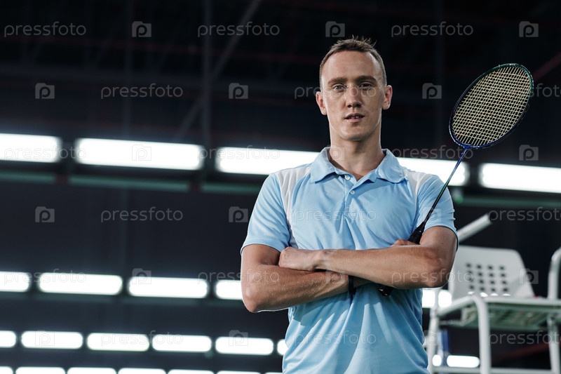 Серьезный молодой игрок в бадминтон