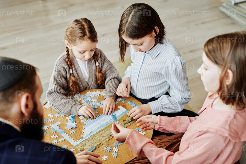 Еврейская семья решает головоломки вместе