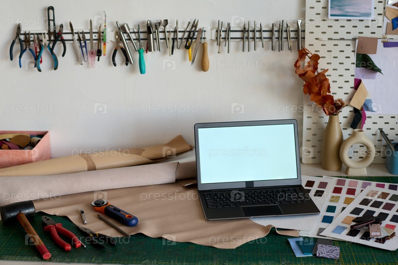 Ноутбук с пустым экраном, стоящий на рабочем месте таннера