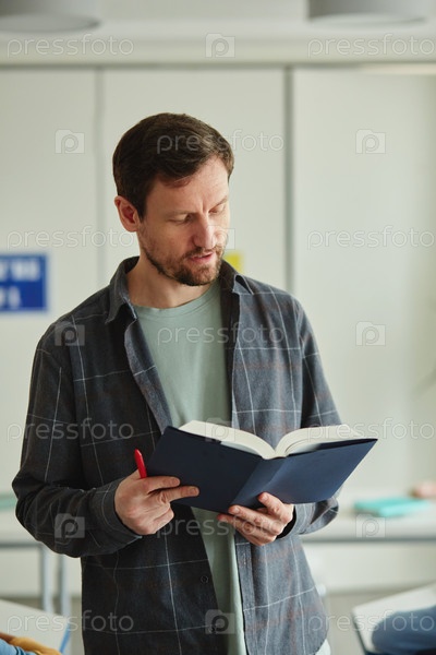 Учитель с книгой в школе Мужчина