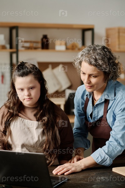 Карпентер использует ноутбук в своей работе на мастерской
