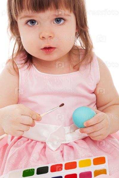 Девочка красит пасхальные яйца