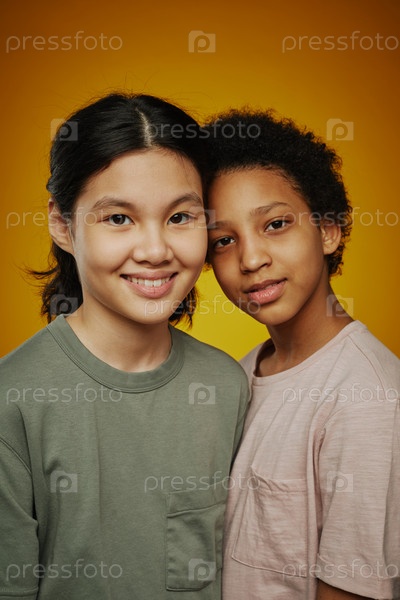 Две милые дружелюбные молодые девушки разных этнических групп
