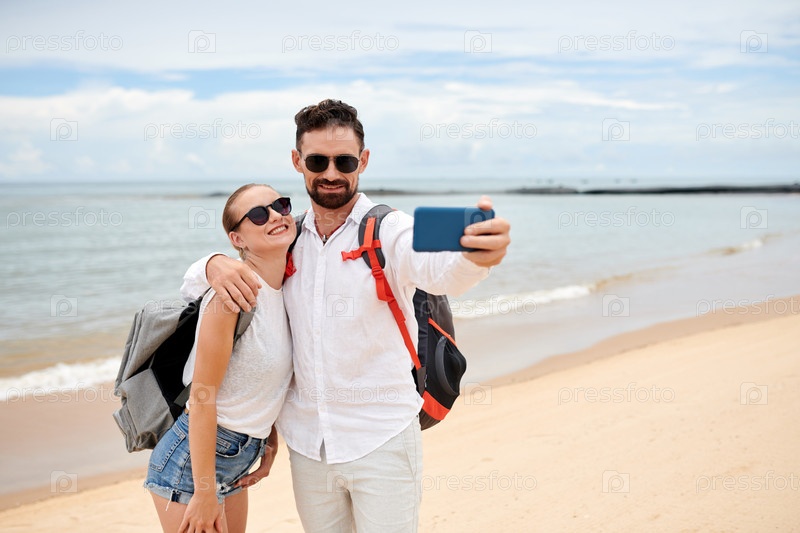 Пара, делающая селфи рядом с морем