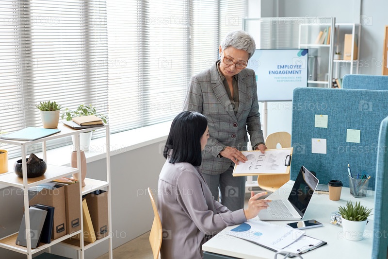 Старший бизнес-менеджер обучает сотрудников в офисной обстановке