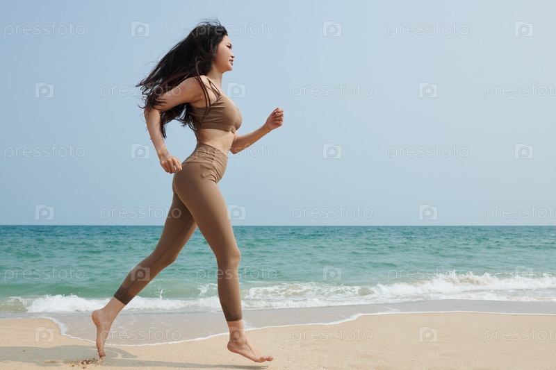 Женщина бегает по пляжу