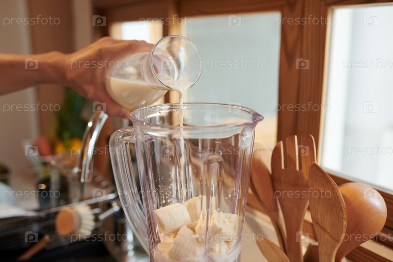 Человек, делающий банановый смузи