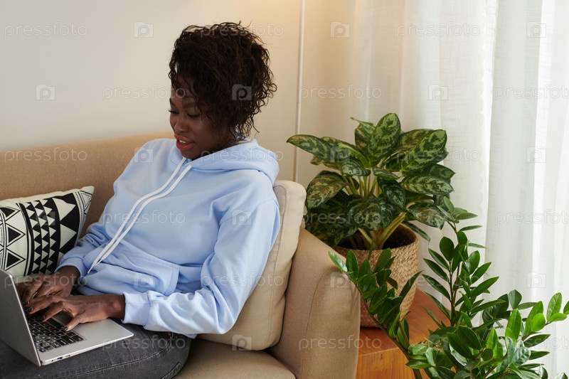 Молодая женщина, работающая из дома