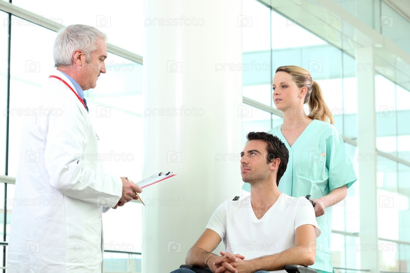 Медсестра катит пациента в инвалидной коляске