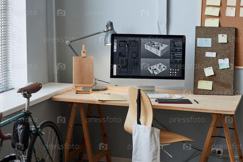 3D-модель дома в домашнем офисе на рабочем месте