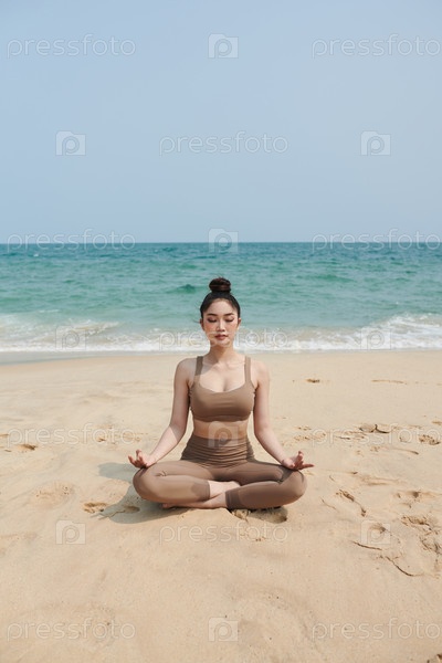 Женщина, медитирующая на пляже