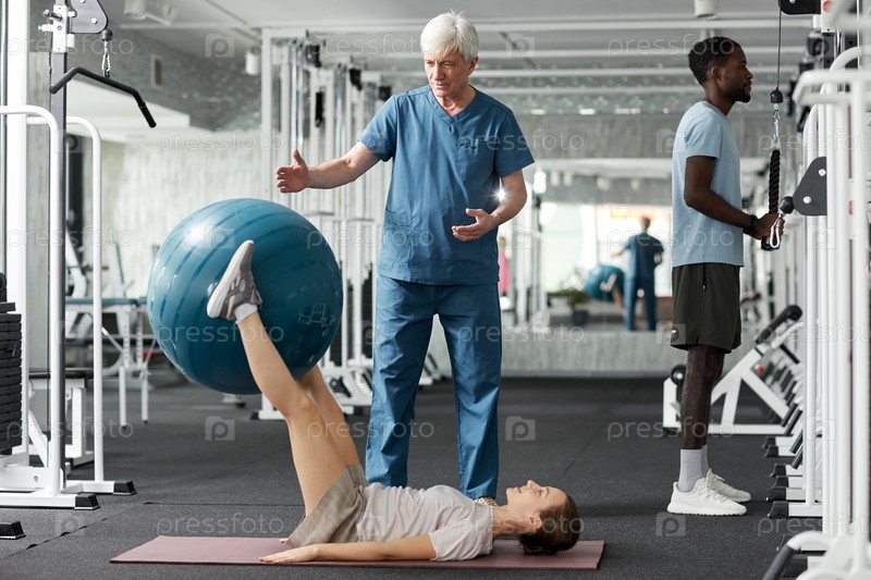 Молодая женщина делает реабилитационные упражнения
