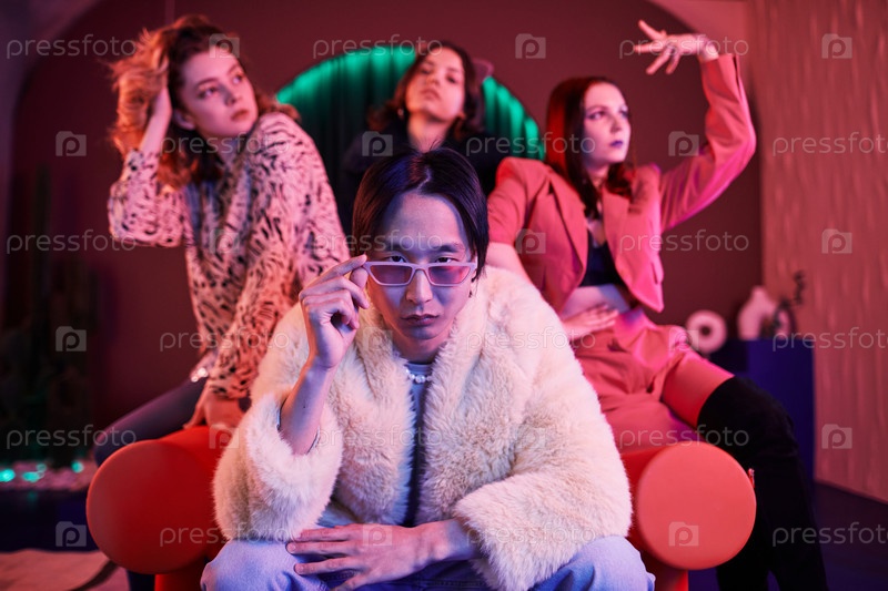 Танцевальная группа в красном неоне