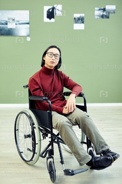 Человек с инвалидностью, посещающий выставку
