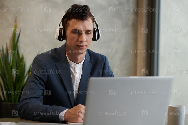Бизнесмен, слушающий музыку