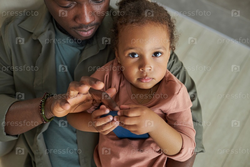 Маленькая девочка использует смартфон со своим отцом