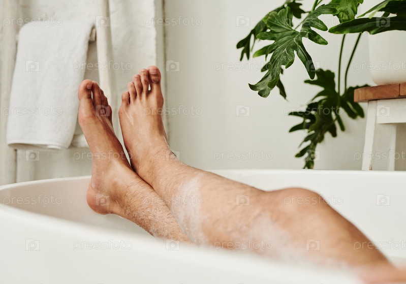 Мужчина, принимающий релаксационную ванну с пеной