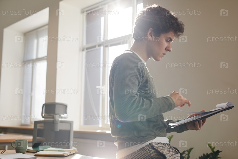 Молодой человек в солнечном свете в офисе