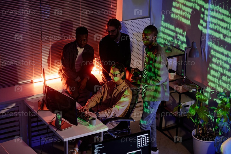 Группа молодых межкультурных разработчиков программного обеспечения, работающих на вечерней встрече