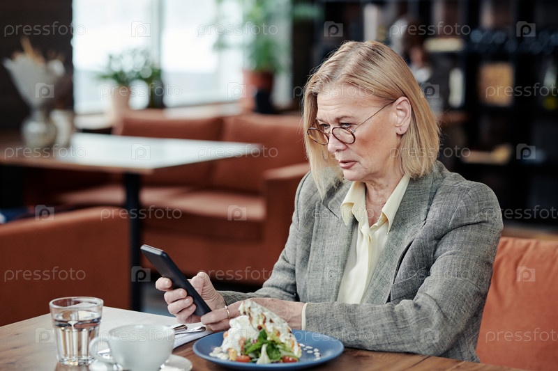 Деловая женщина обедает в кафе