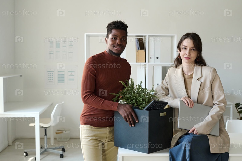Пара коллег переезжает в новый офис