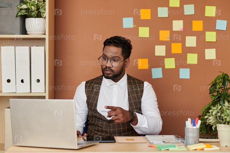 Бизнесмен, посещающий онлайн-встречу