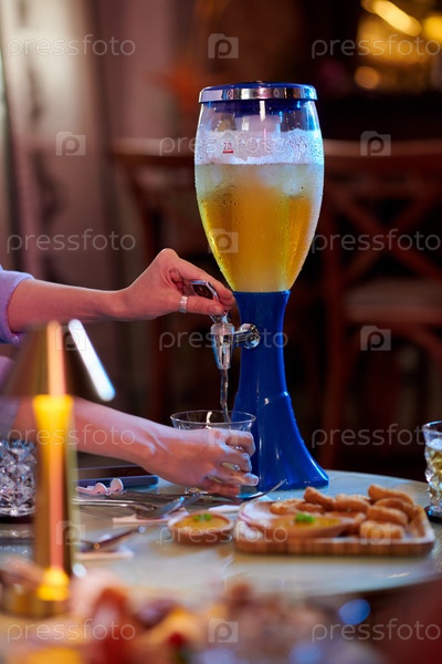 Женщина, наполняющая стакан пивом
